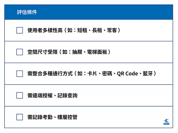 選擇門禁系統前,建議從下列幾個核心面向出發進行評估: